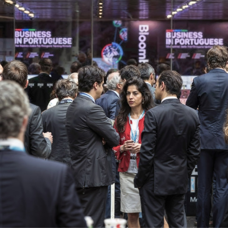 A identidade visual captou com sucesso o espírito da conferência, atraindo uma vasta gama de participantes e fomentando conexões significativas entre empresas de todo o mundo lusófono.